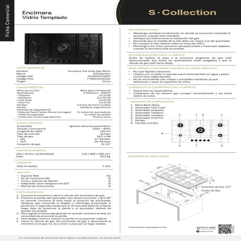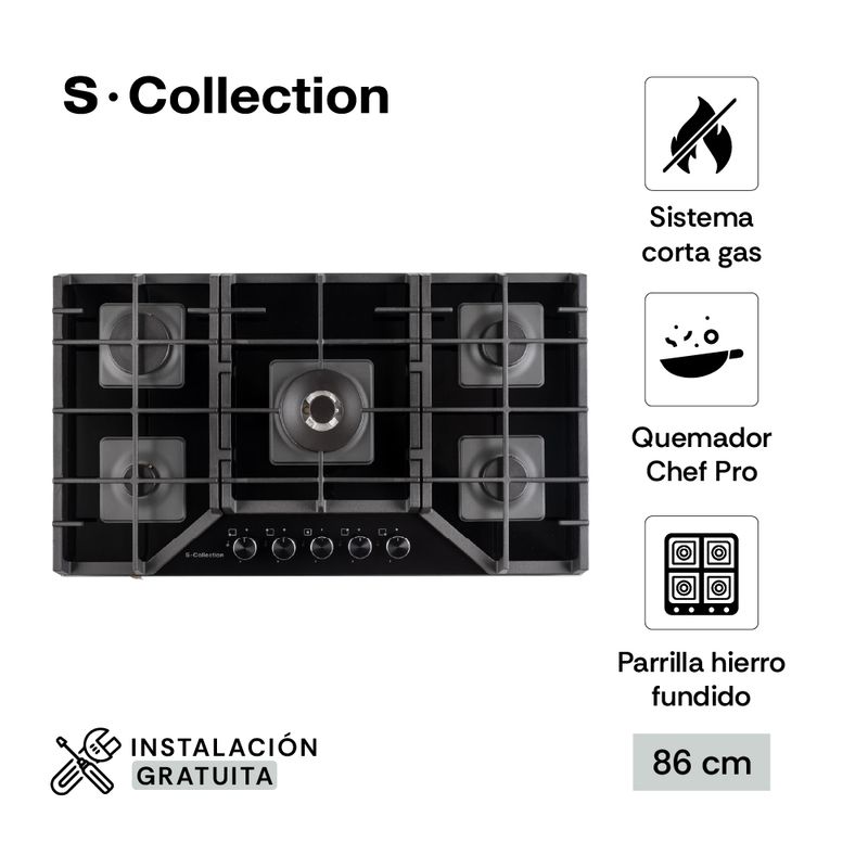 Resalta la elegancia de ese espacio especial con nuestra encimera Sole fabricada en vidrio templado, con perillas metálicas y parrillas en hierro fundido. Cuenta también con quemadores sellados de distintos tamaños y potencias, los cuales son ultra eficientes.