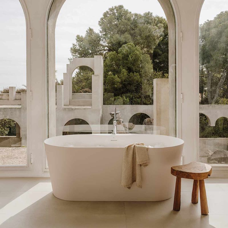 Baños y SpaInodoros y SanitariosInodorosTina Roca Raina Oval De Stonex Acab. Perla C/Blanco De 159X79X59 C/Desague De Push