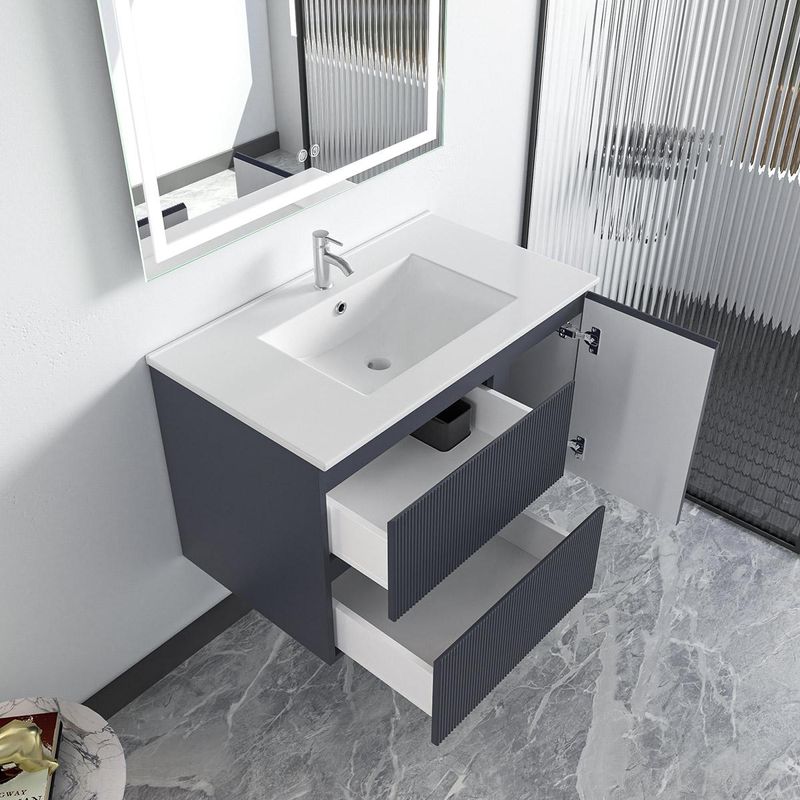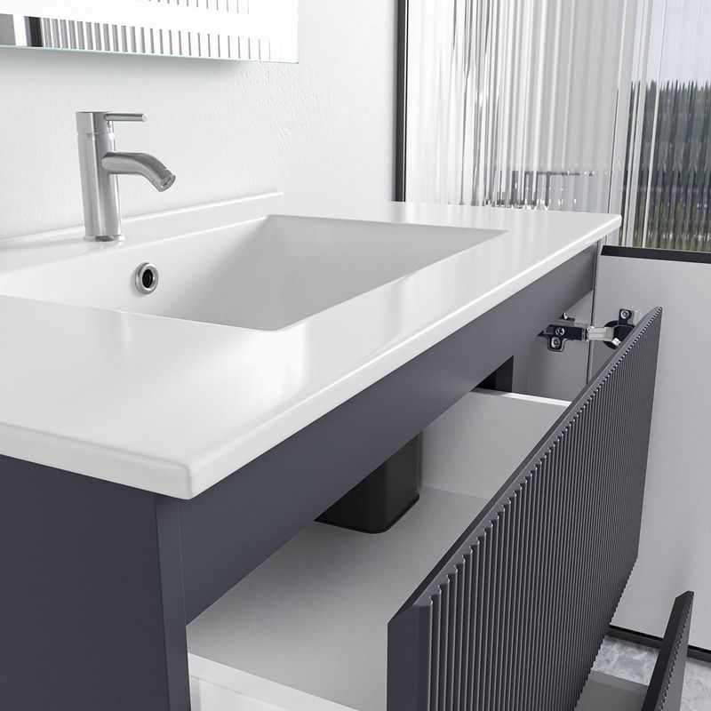 El mueble para baño modelo Tamis cuenta con un elegante diseño de amplios cajones y compartimientos para organizar de la mejor manera todos los accesorios que necesitas tener a la mano durante el día. Elaborado con una resistente estructura de MDF y un lavatorio de loza cerámica de alta resistencia y durabilidad. Un modelo color gris cálido que combinará perfecto con la decoración de tu baño y se convertirá en la sensación de tus invitados.