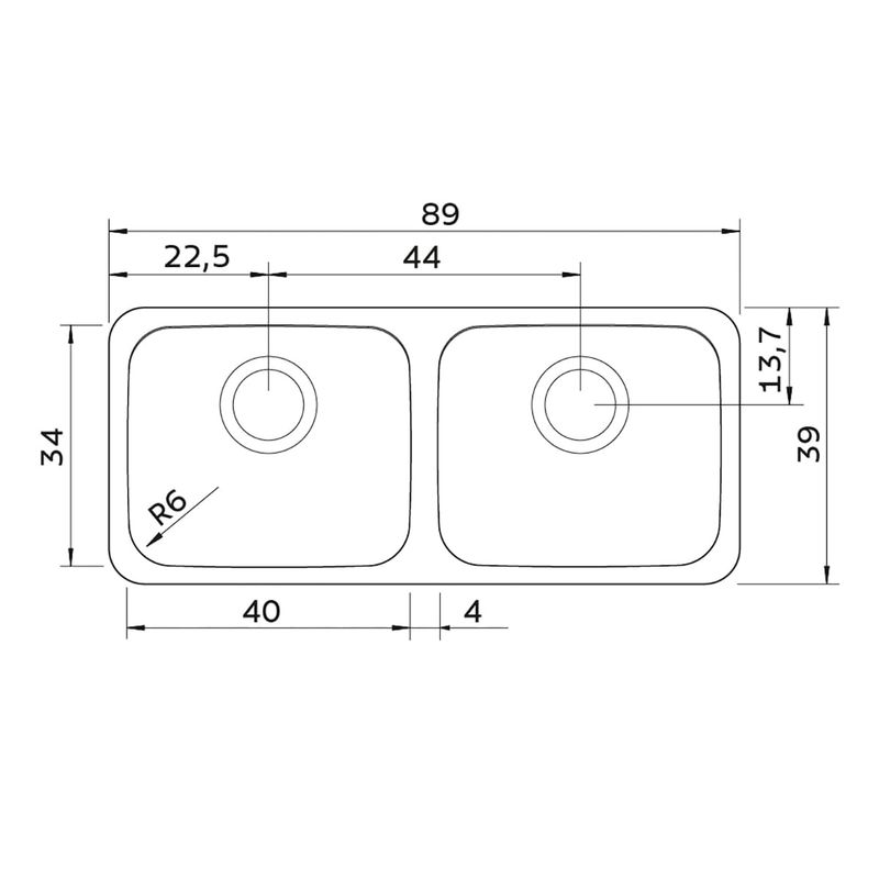 Lavadero Tramontina Cub Dora 40Bl Sat Ac/Inox 02 Poz 89X39Cm Prf:18.5Cm (Inc:02 Valv 4½"+Tramp)