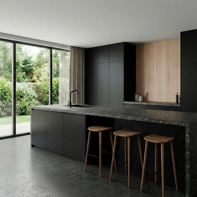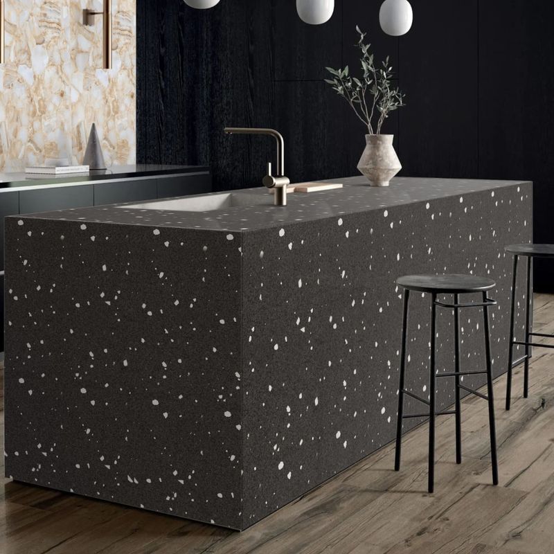 Piedra Sinterizada Terrazo Negro Pulido - 80X240 cm - 1.92 m2
